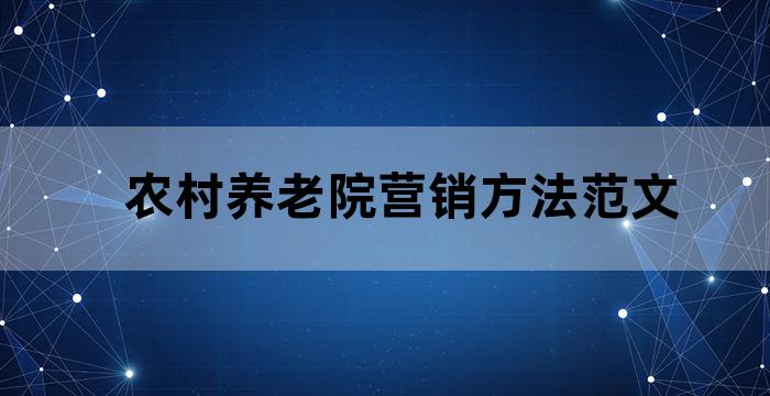 農村養(yǎng)老院營銷方法范文